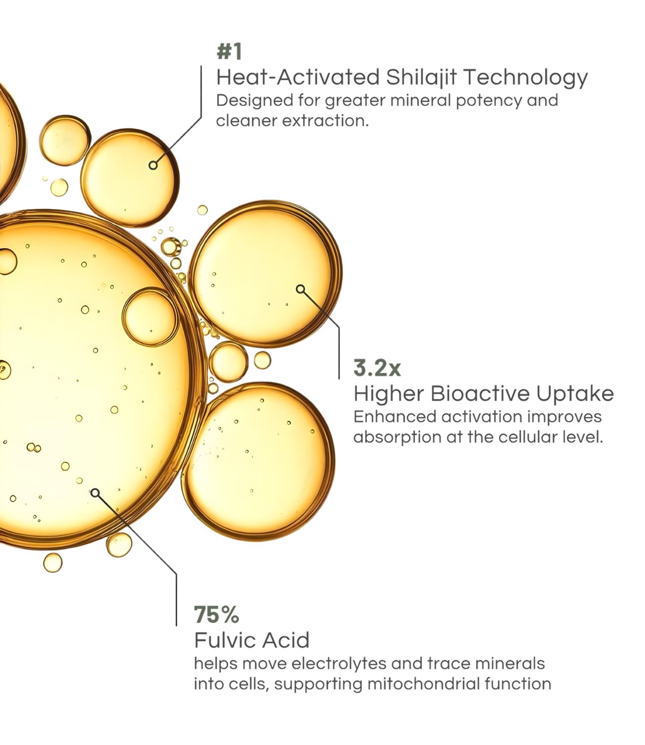 Heat activation enhances the natural bioactive compounds in Shilajit — making them more concentrated, more potent, and easier for your cells to use.